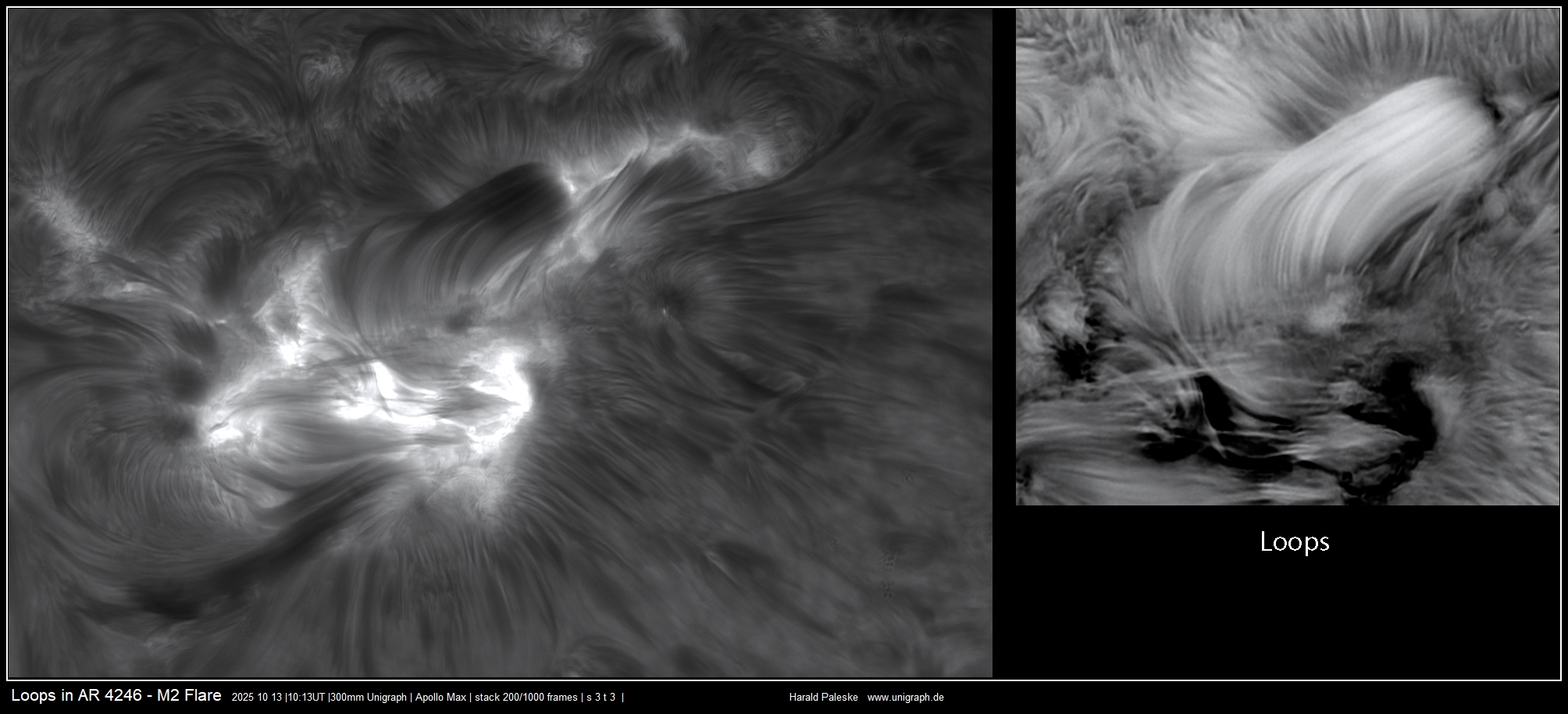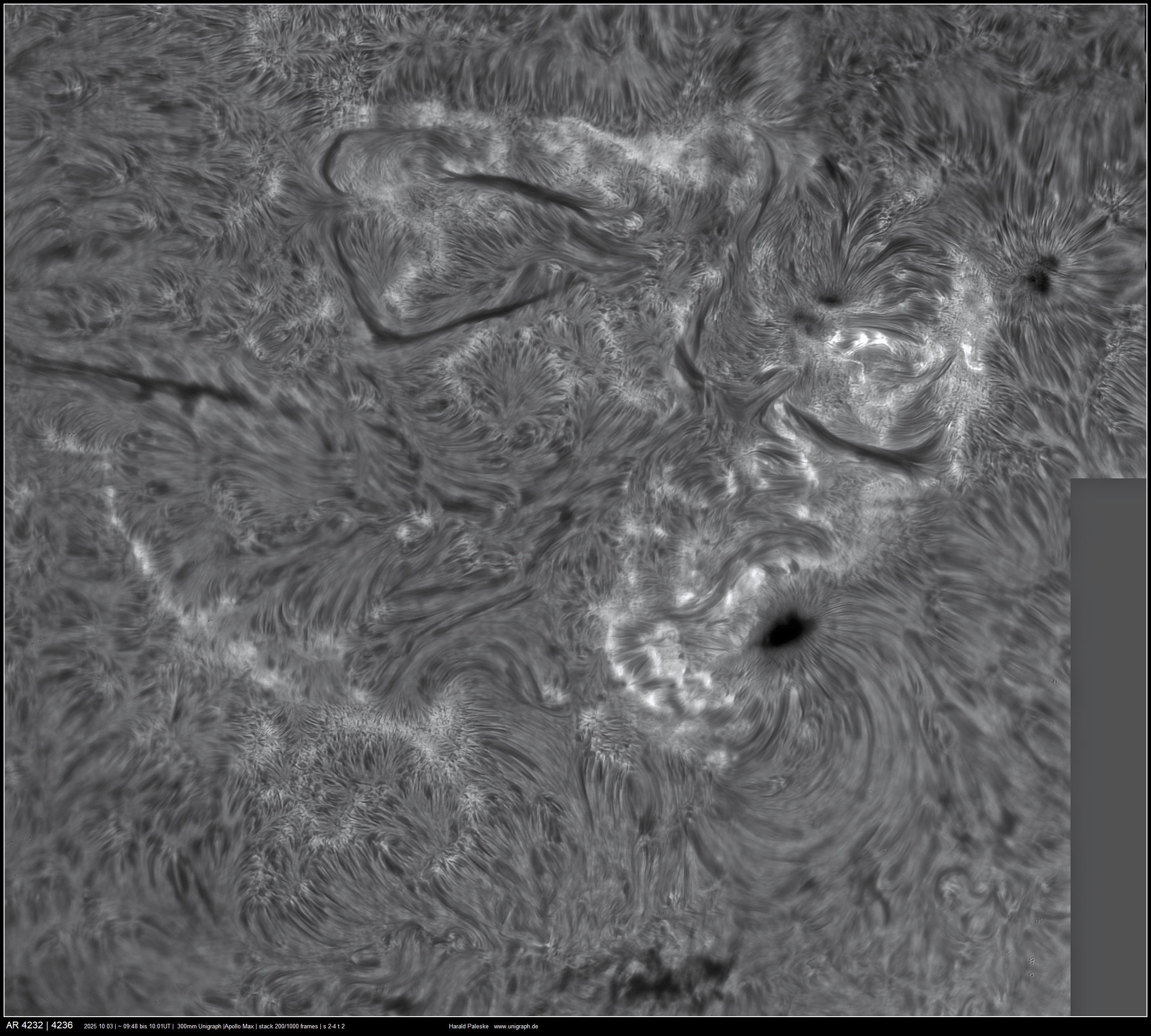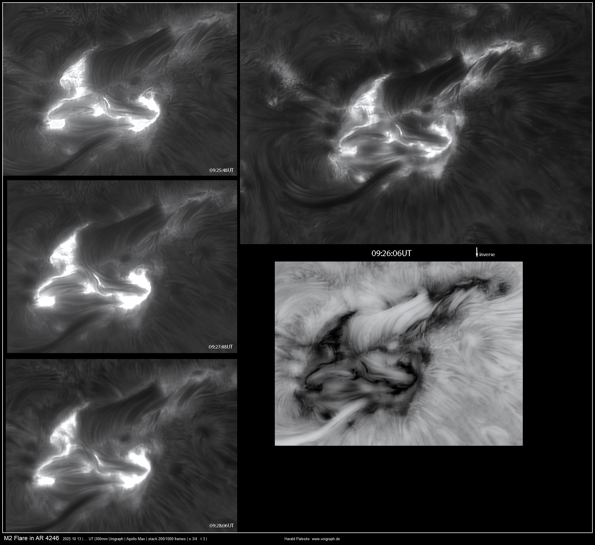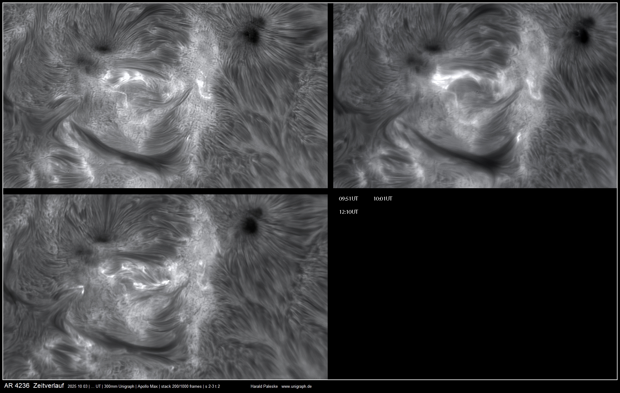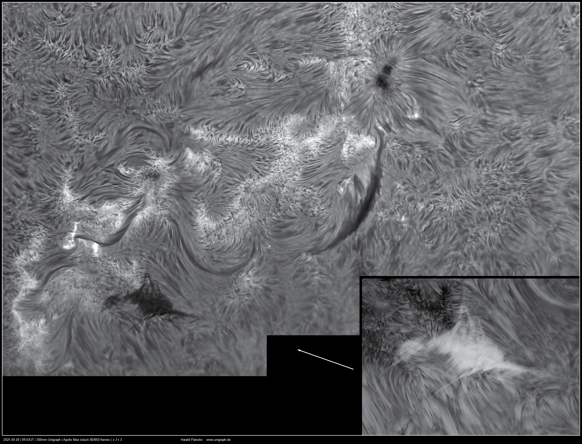 d.h. es musste mehrmals hintereinander die gleichen Regionen aufgenommen werden, damit eine gute Auswahl der bearbeiteten Ergebnisse zur Verfügung stand. Obwohl die Sonnenaktivität nicht besonders hoch ist, haben sich die Anstrengungen
