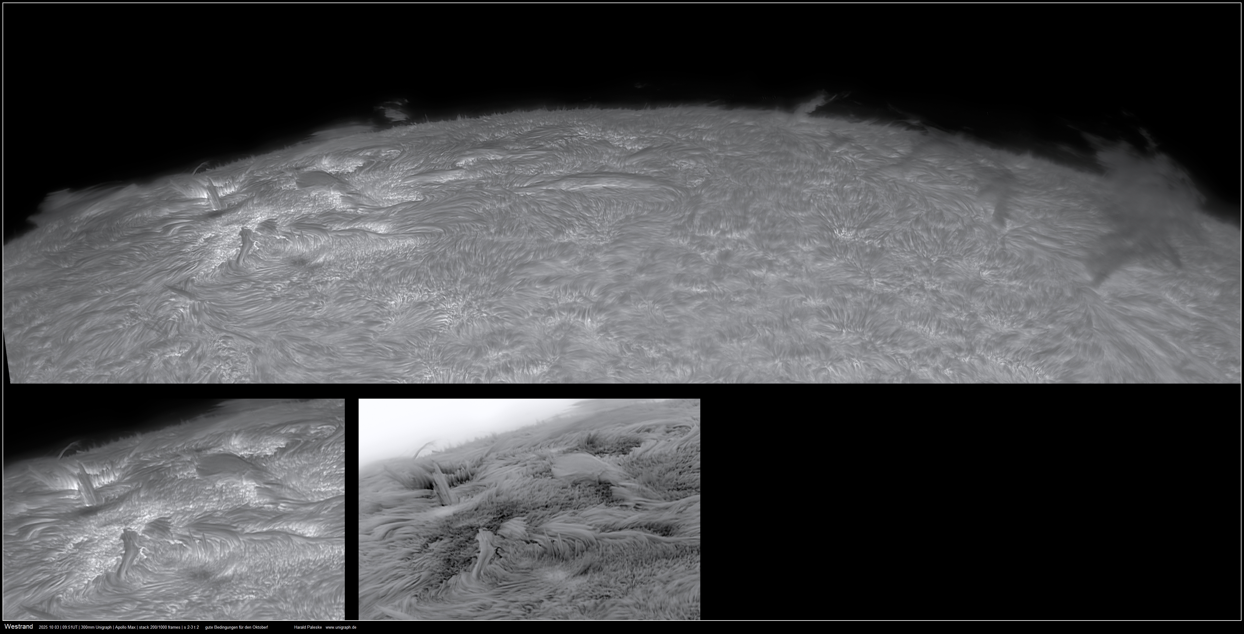 Bild 3 (WL). Die Bedingungen waren wie in letzter Zeit immer extrem wechselhaft. Vor allem bei größeren Mosaiken ist der Qualitätsunterschied sehr auffällig. Vielleicht noch am deutlichsten Mosaik mit dem langen Westrandfilament