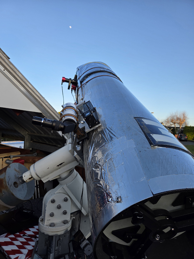 leistungsfähigste Tesleskop bisher ist. Er wird zukünftig mehrfachspektrale Aufnahmen in Ha, Cak und Weißlicht zulassen. Daneben steht die Mondbeobachtung mit einem 408mm Newtonteleskop auf dem Programm, um feinste Details der