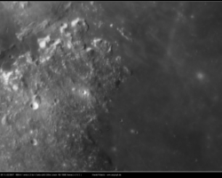 Ich beobachtete den Mond schon recht früh (gegen 02Uhr). Die Luft war nur mittelmäßig, sodass ein 610nm Longpassfilter zum Einsatz kam. Im Verlaufe der Beobachtungen wurde das Seeing immer besser und schließlich wechselte ich den