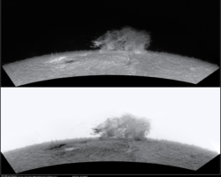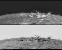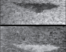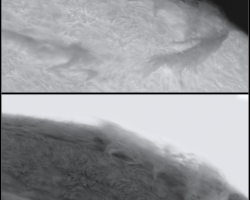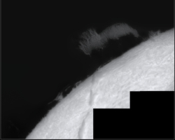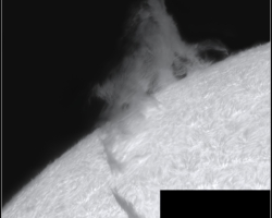 Neuerung betrifft die Ergänzung der Halpha-Beobachtungen durch den 150/1200 Weißlichtprojektionsrefraktor. Mit diesem Instrument werden Sonnenfleckenpositionszeichnungen und Detailzeichnungen im Weißlicht angefertigt. Die Ergebnisse