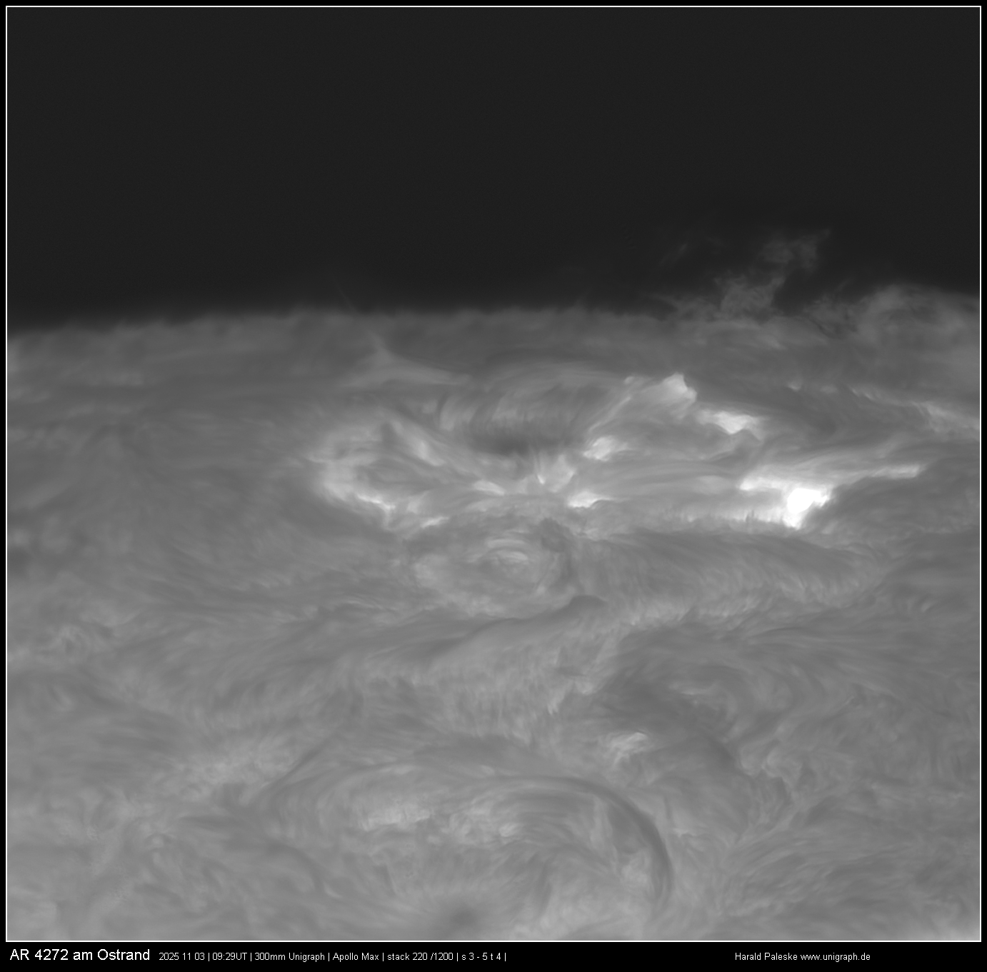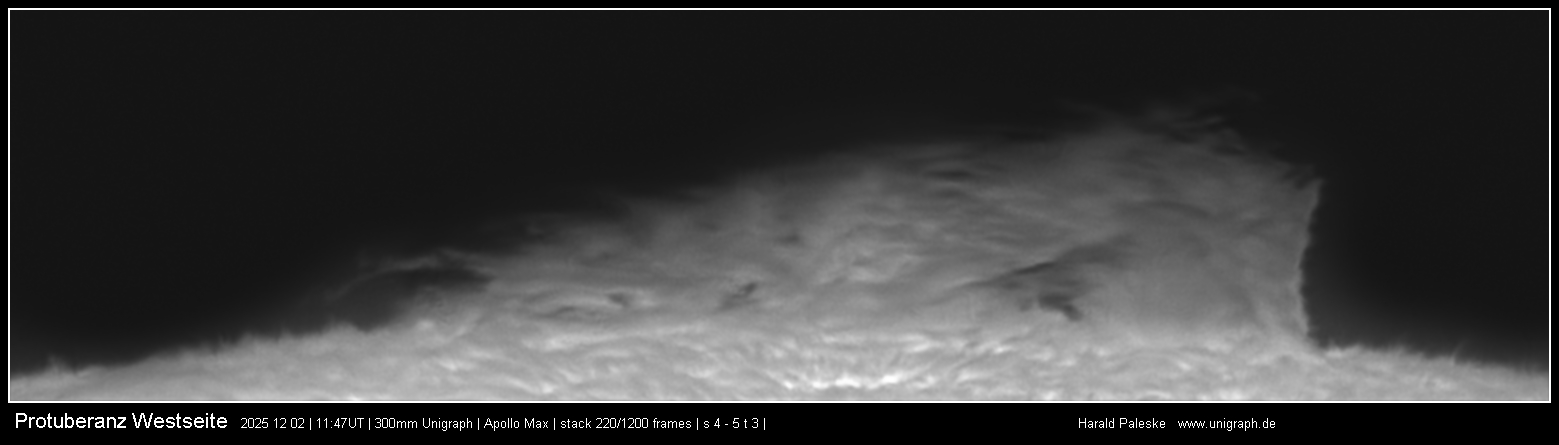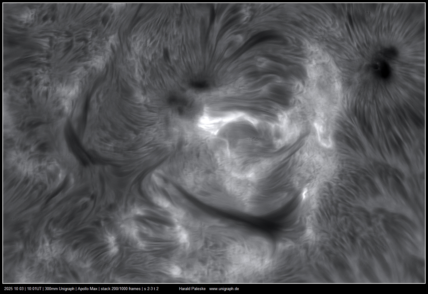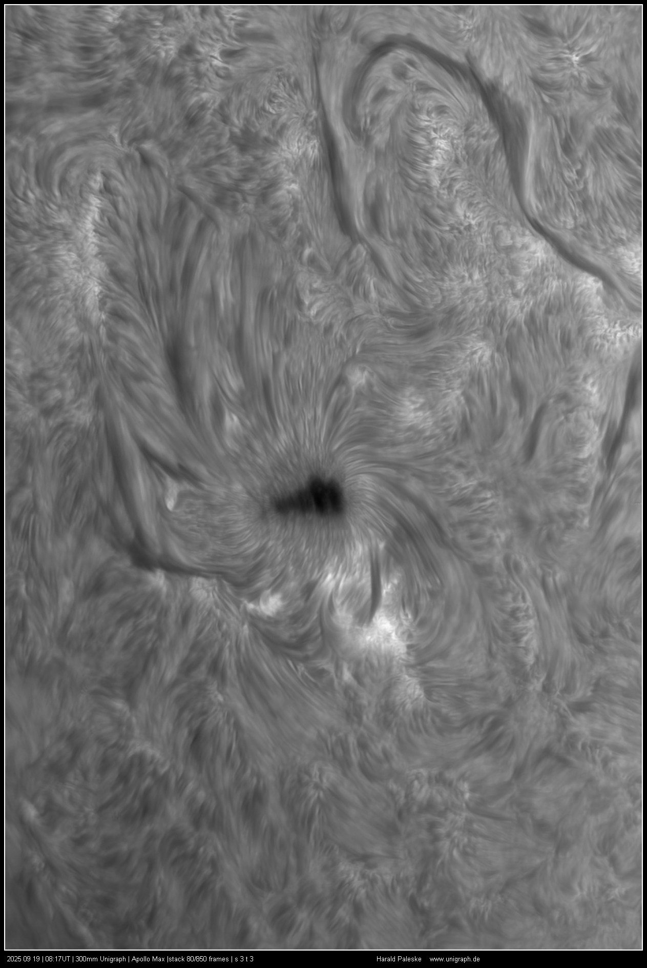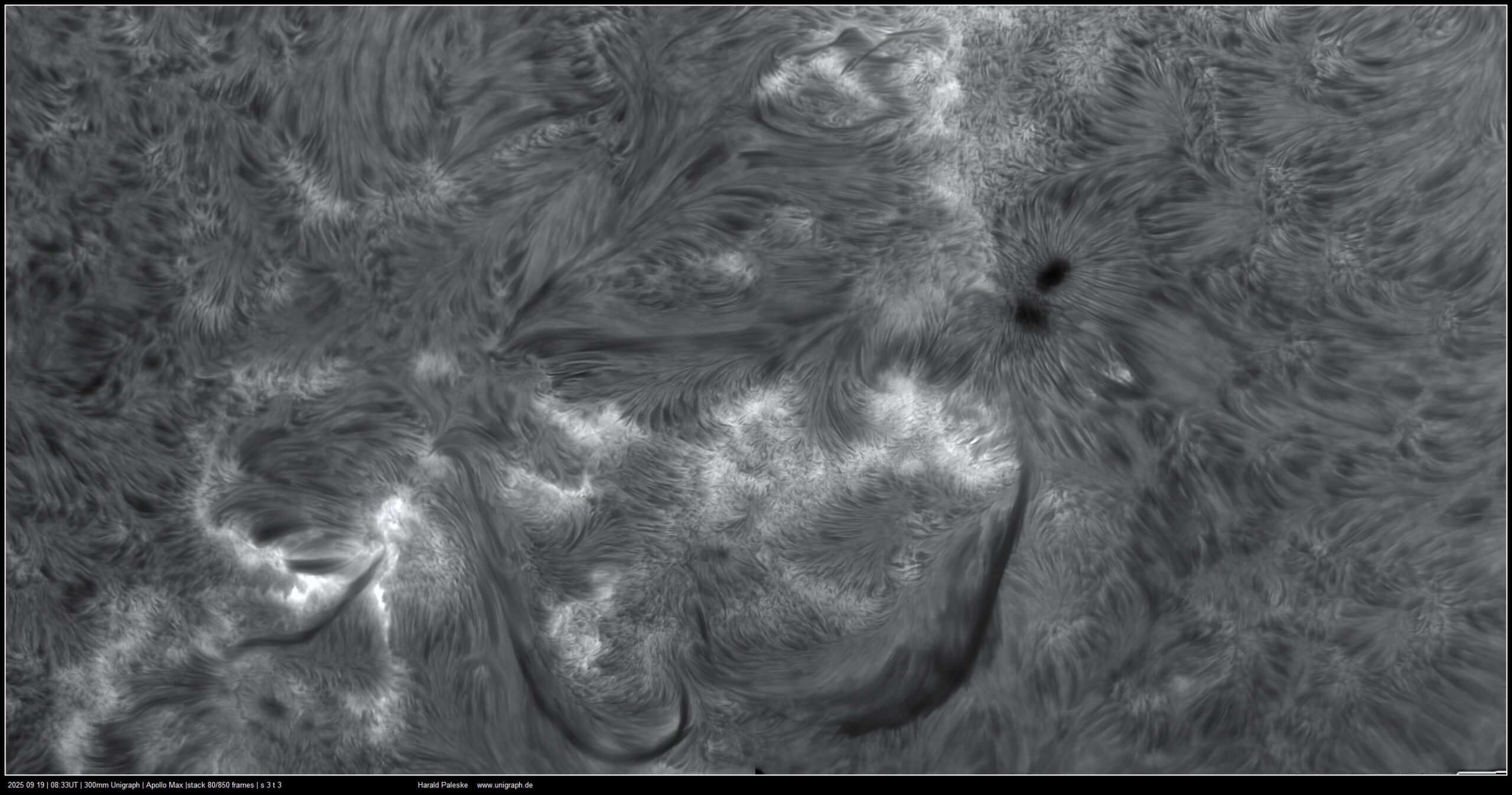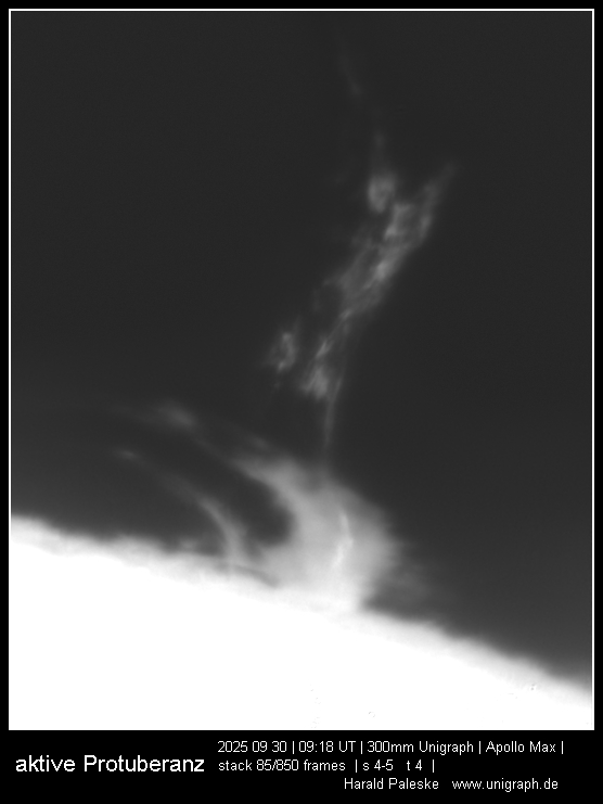 Im Jahr 2025 werden die erfolgreichen Beobachtungen mit dem 300mm Spiegelunigraph weiter fortgesetzt. Wir sind im Jahr des Sonnenmaximums und ich hoffe, dass uns viele schöne Fleckengruppen beschert werden. Instrumentell werden nur