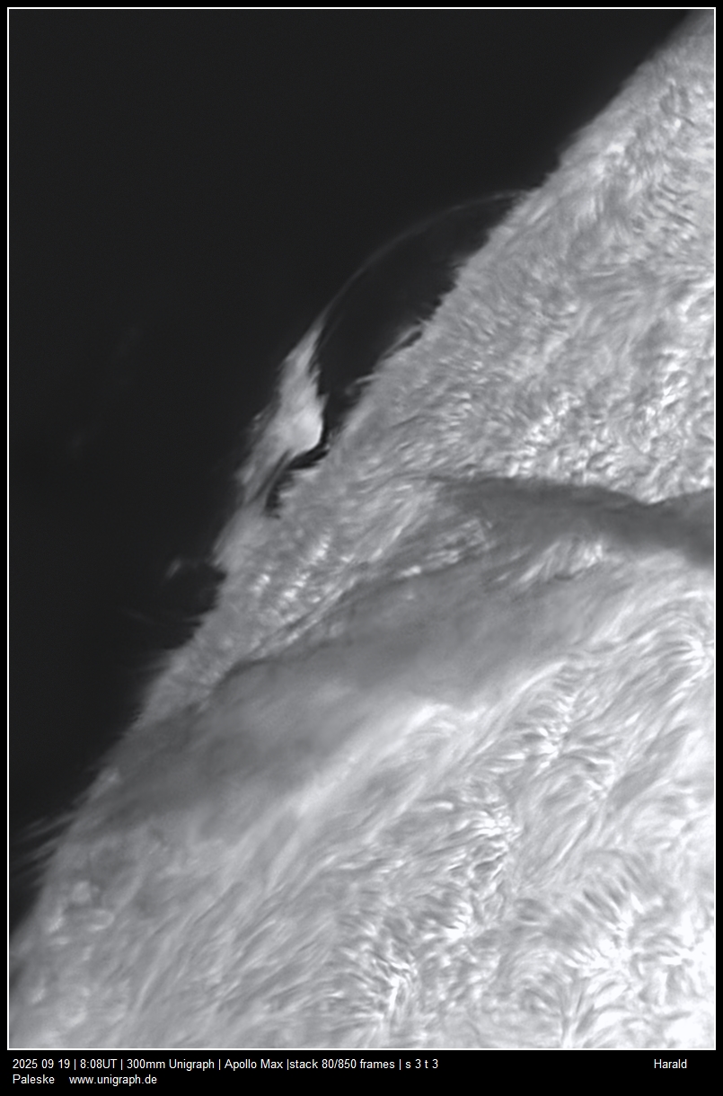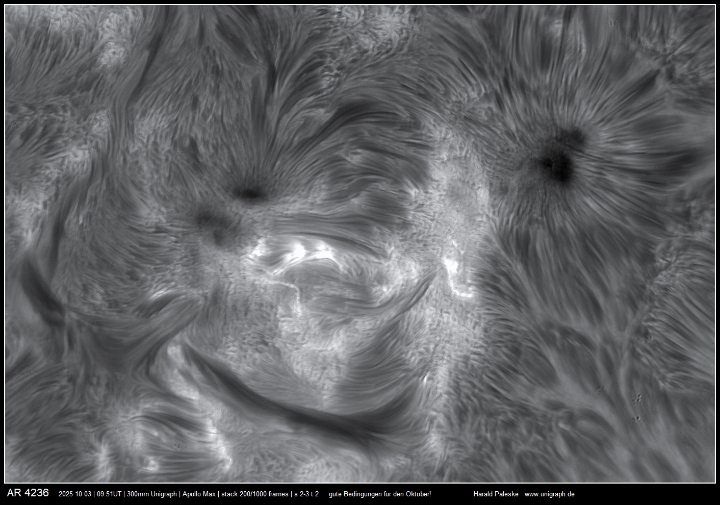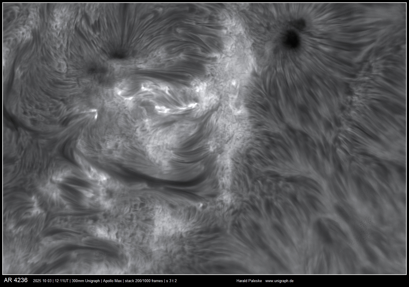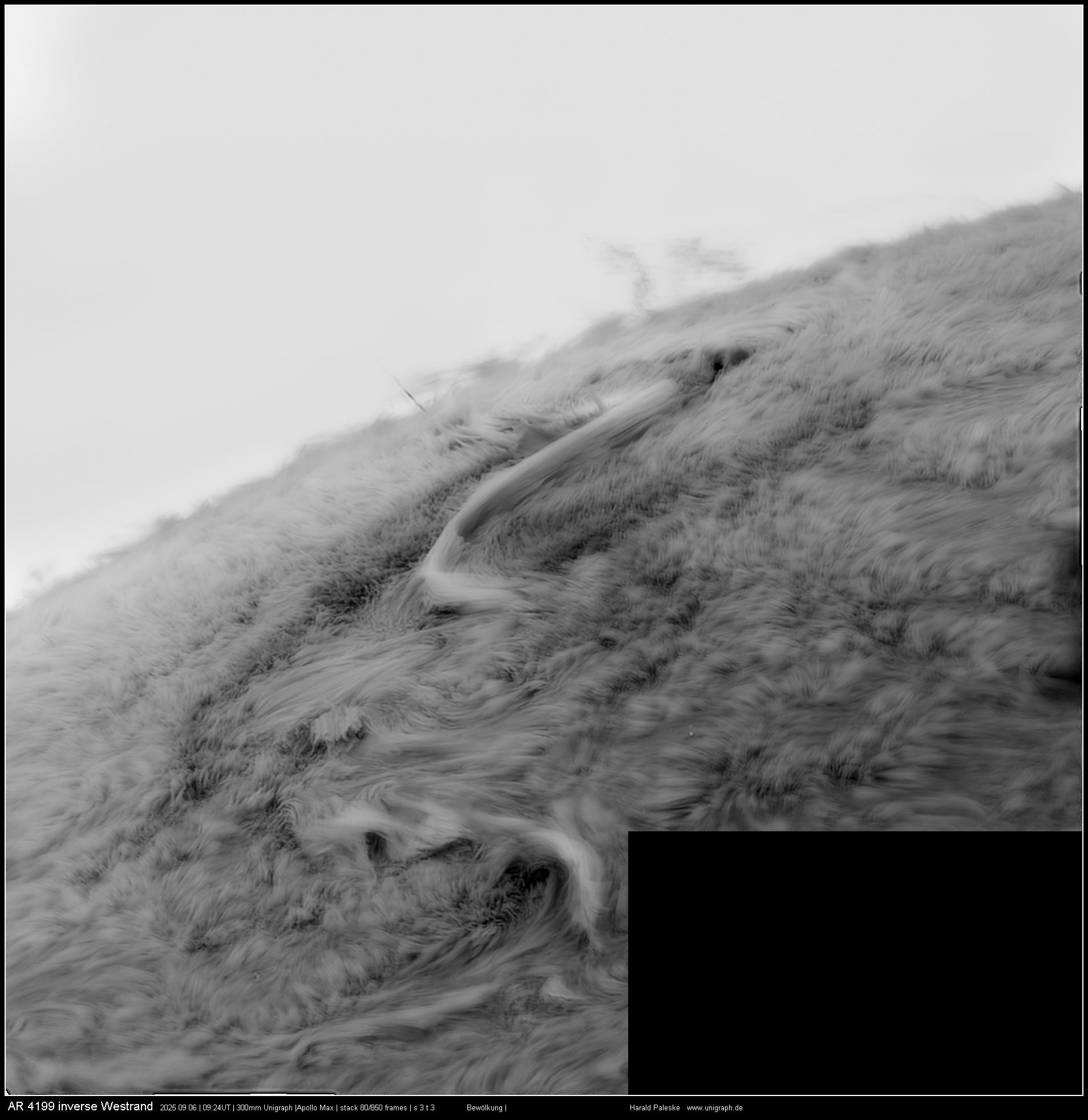 Im Jahr 2025 werden die erfolgreichen Beobachtungen mit dem 300mm Spiegelunigraph weiter fortgesetzt. Wir sind im Jahr des Sonnenmaximums und ich hoffe, dass uns viele schöne Fleckengruppen beschert werden. Instrumentell werden nur