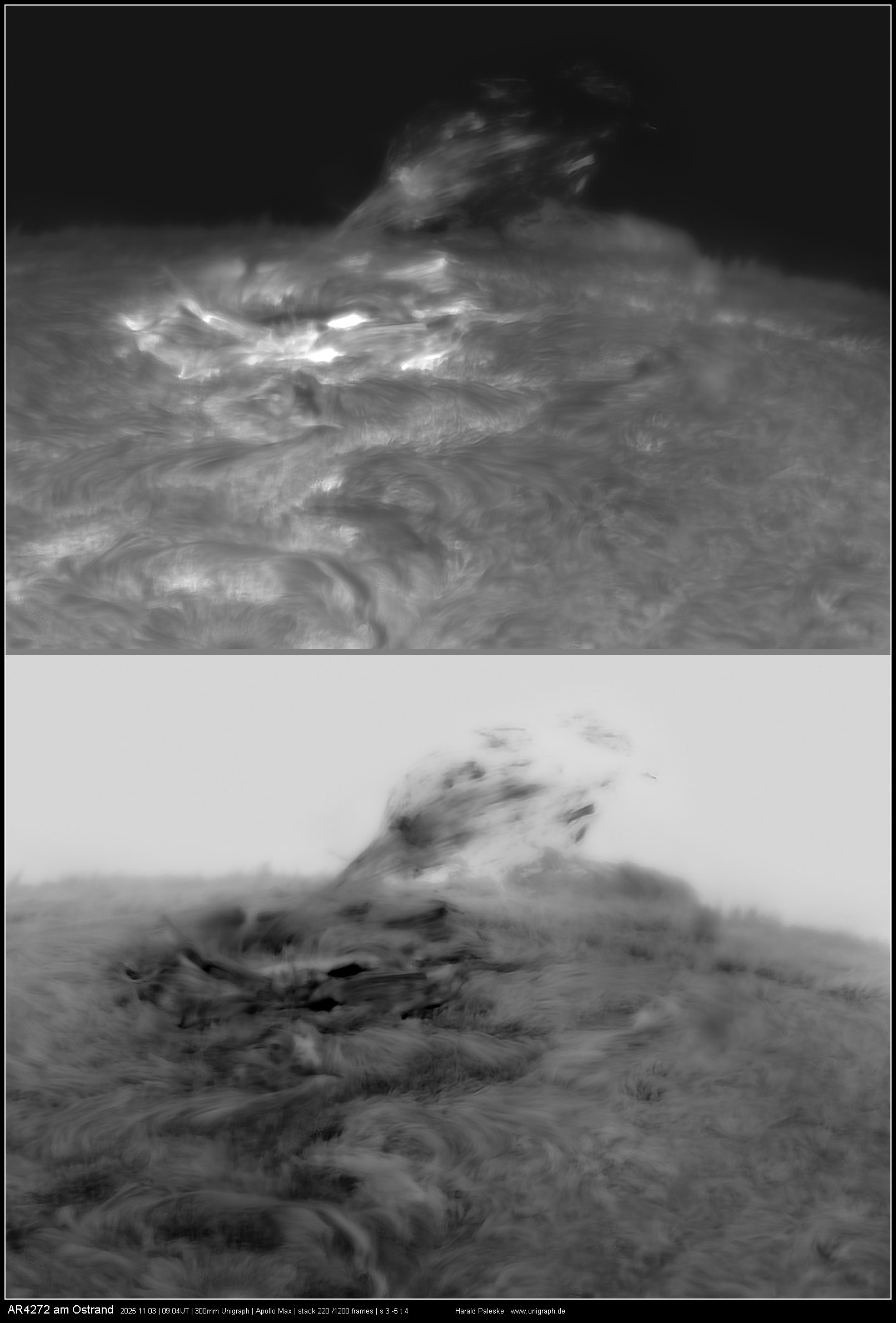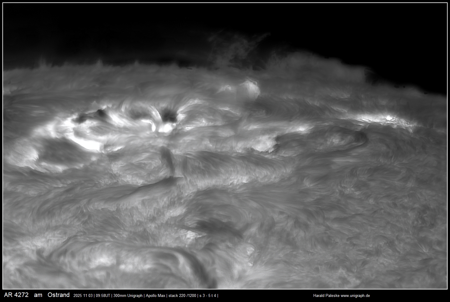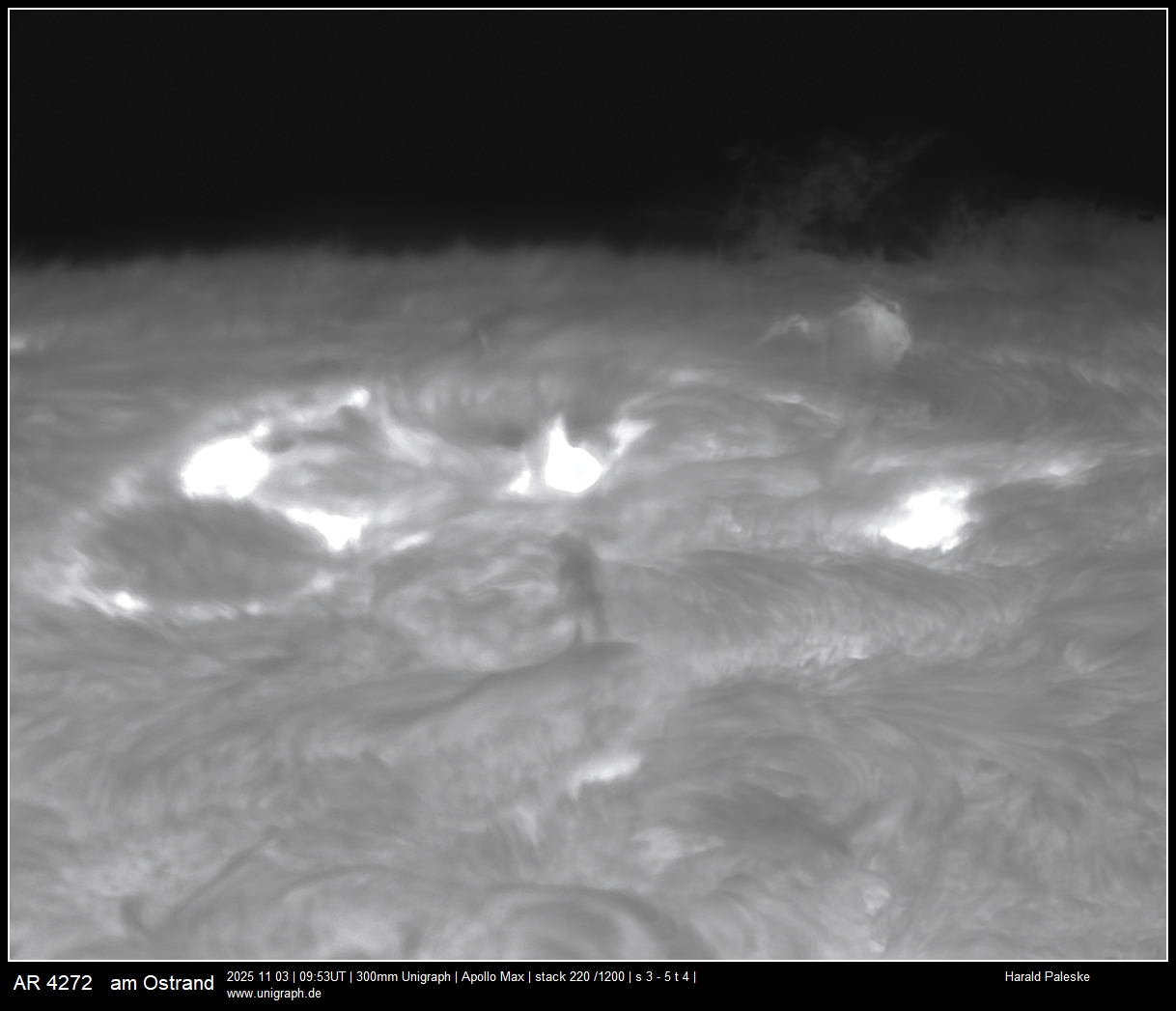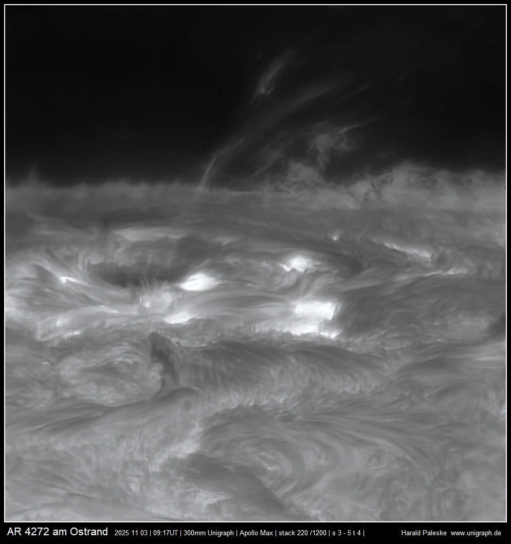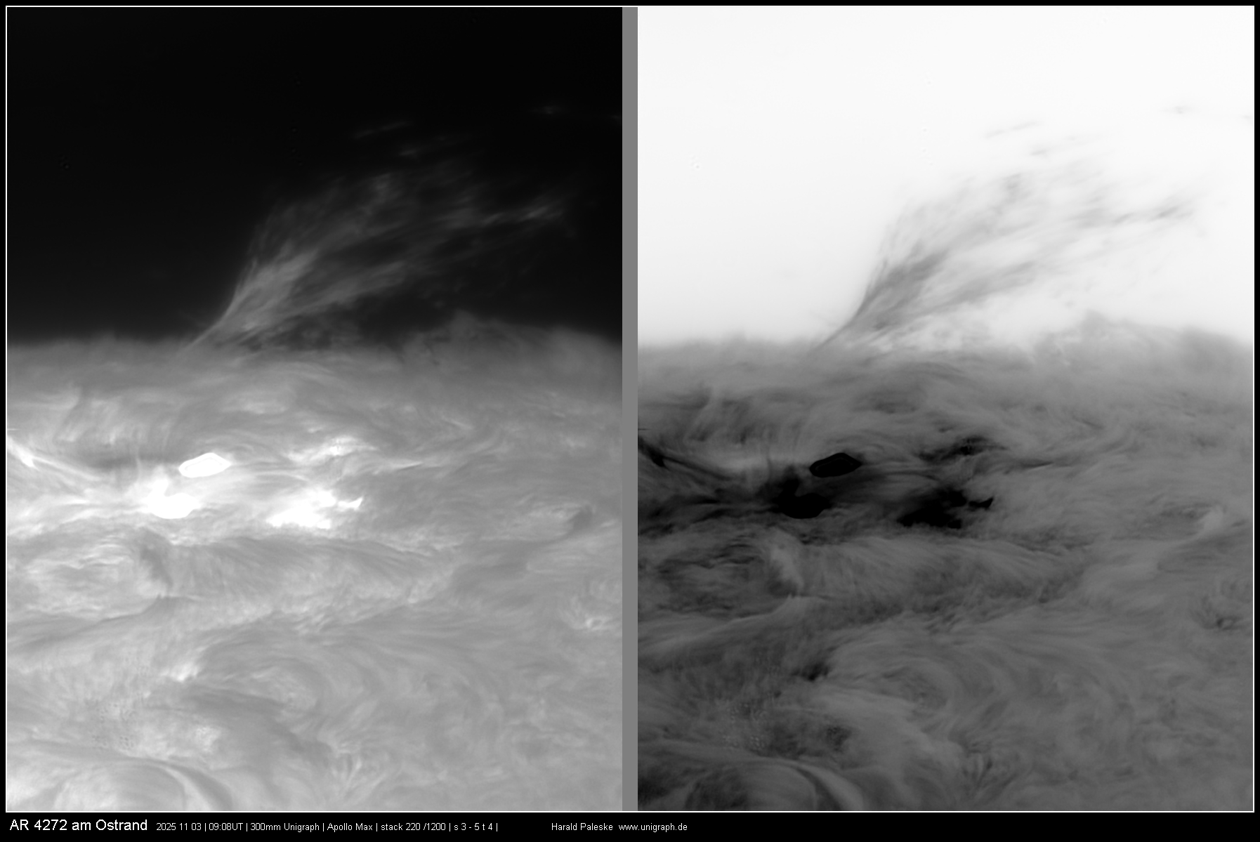 Im Jahr 2025 werden die erfolgreichen Beobachtungen mit dem 300mm Spiegelunigraph weiter fortgesetzt. Wir sind im Jahr des Sonnenmaximums und ich hoffe, dass uns viele schöne Fleckengruppen beschert werden. Instrumentell werden nur