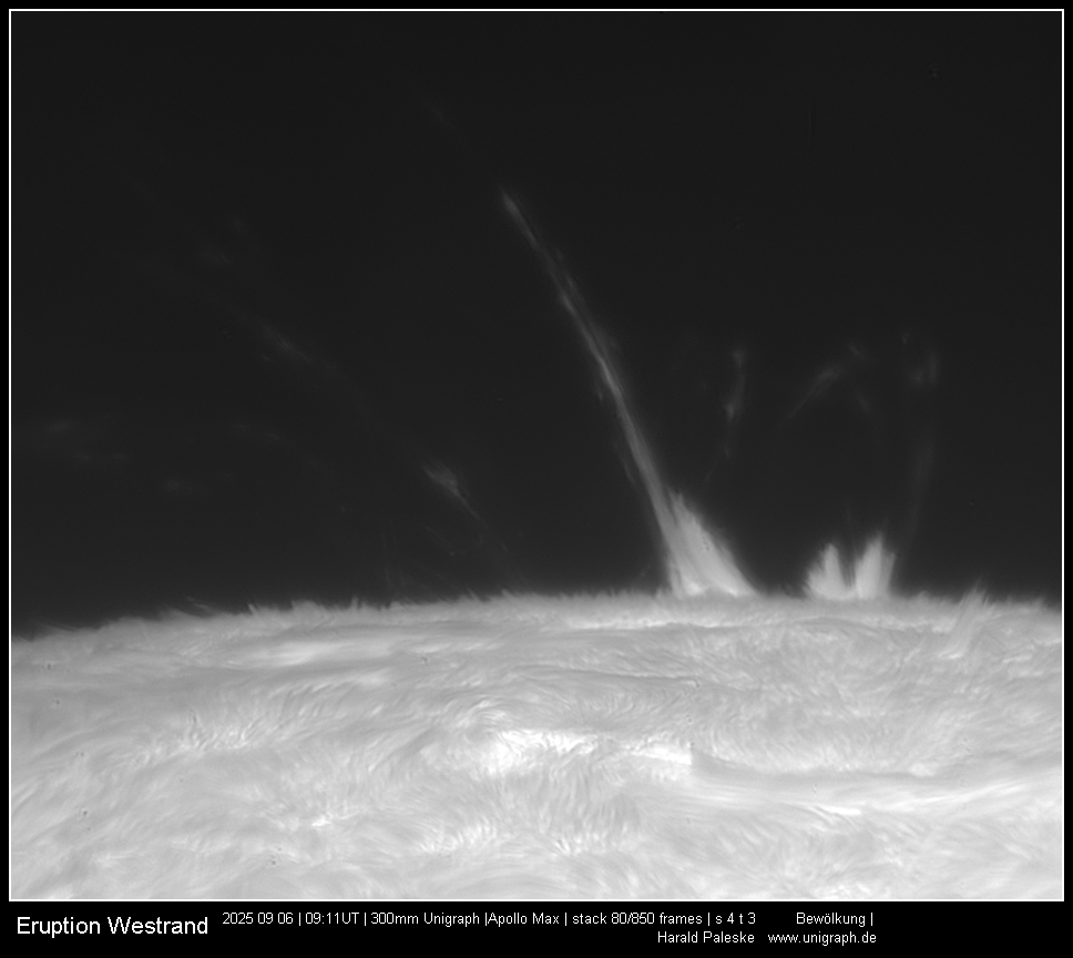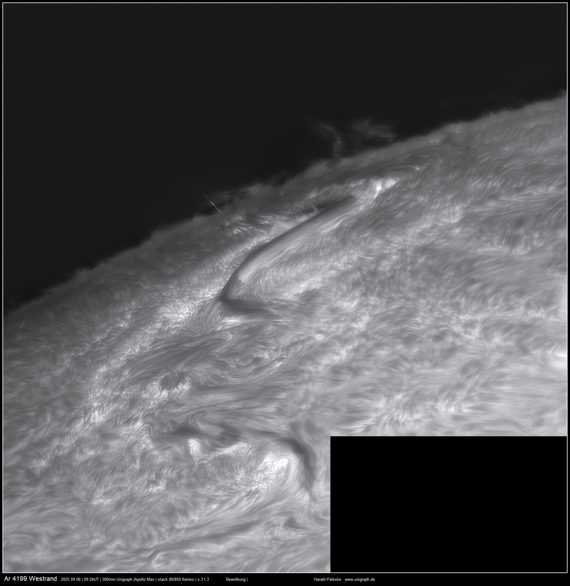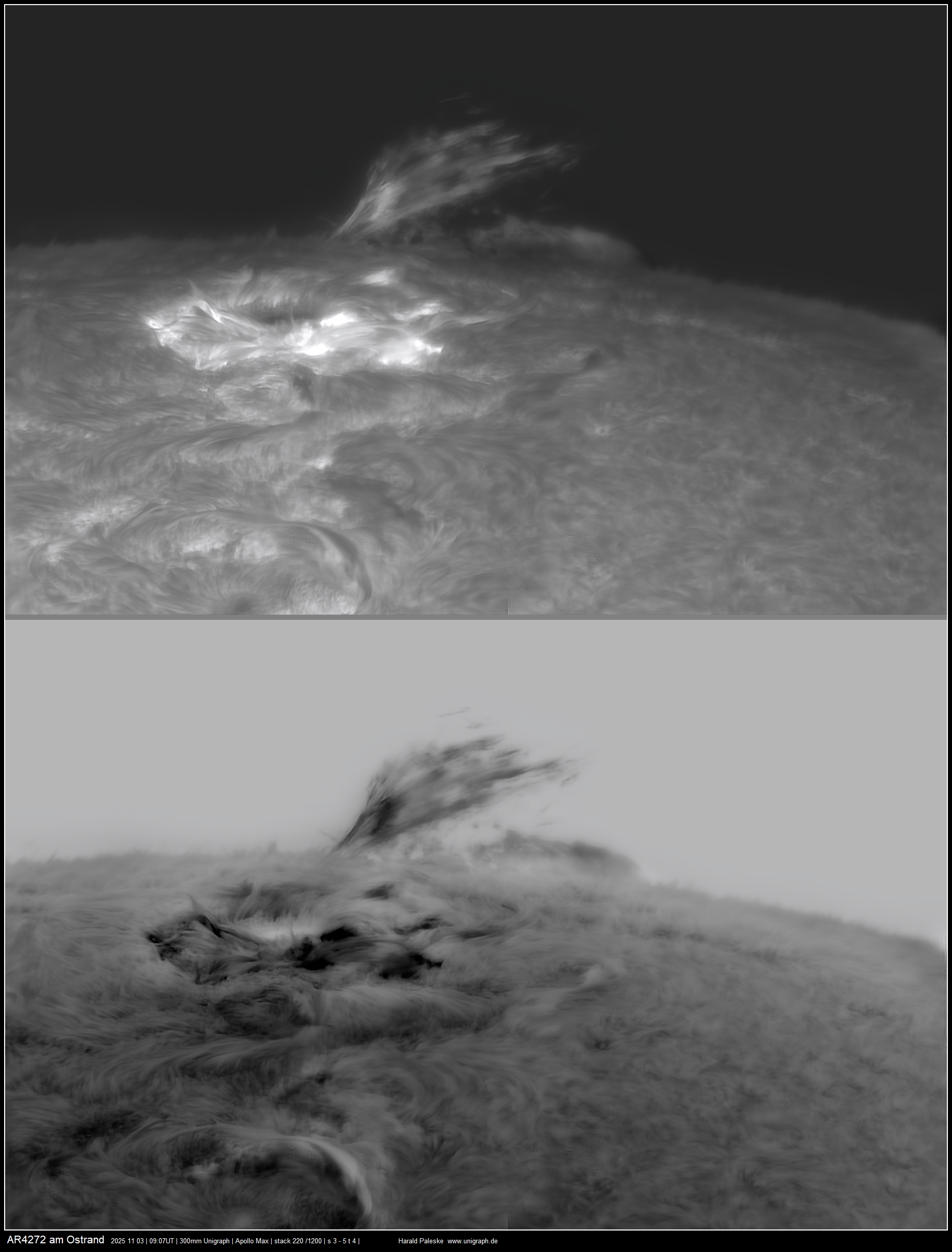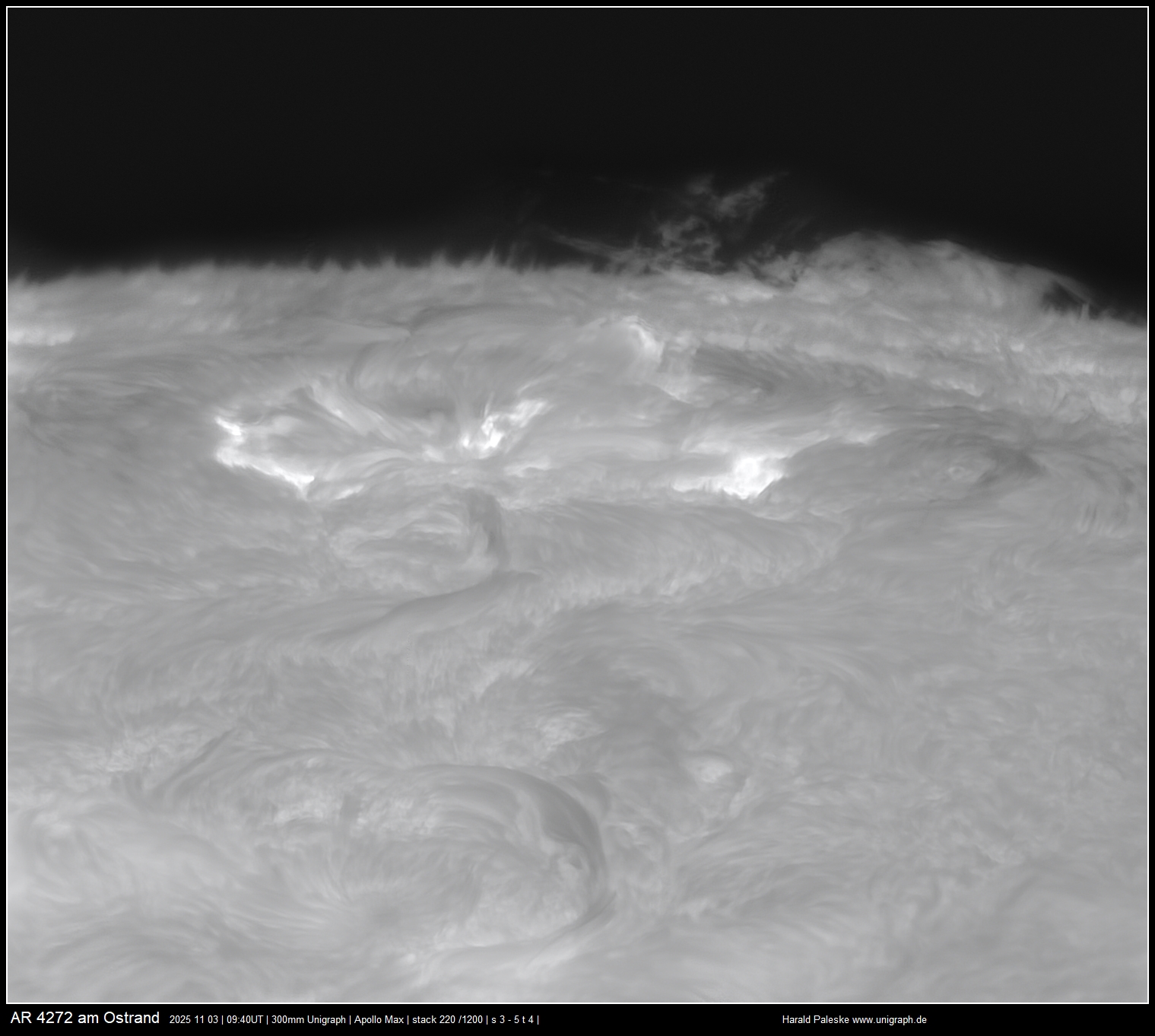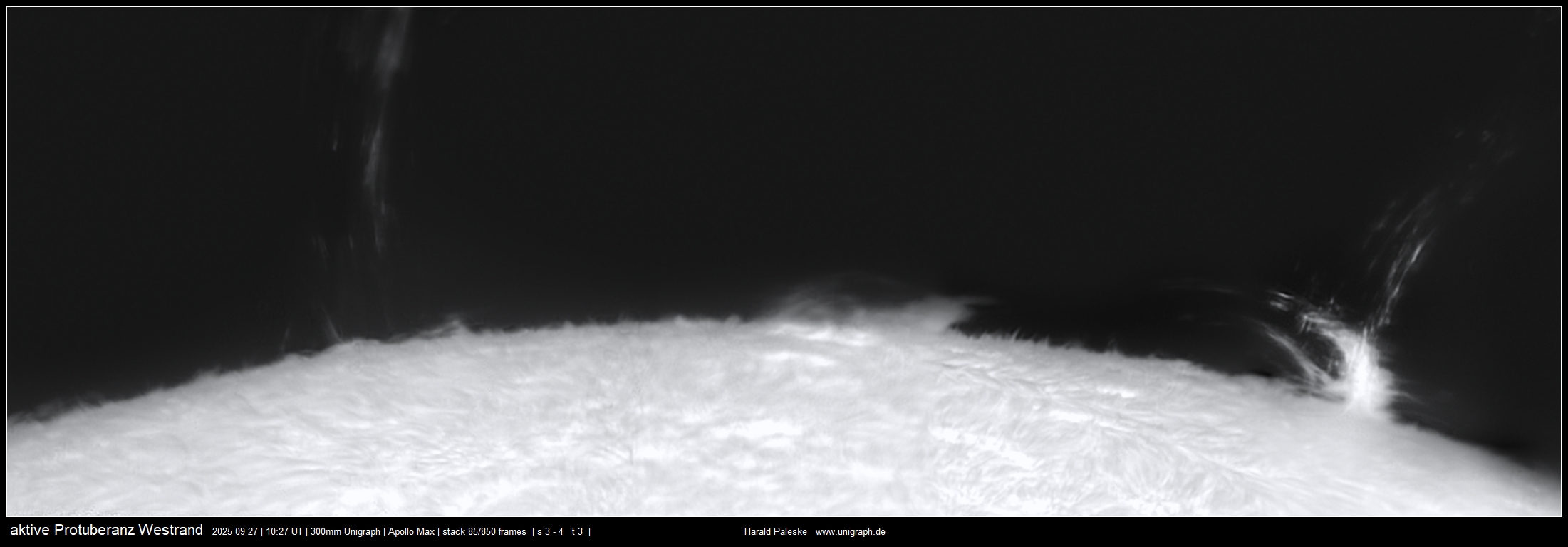 Im Jahr 2025 werden die erfolgreichen Beobachtungen mit dem 300mm Spiegelunigraph weiter fortgesetzt. Wir sind im Jahr des Sonnenmaximums und ich hoffe, dass uns viele schöne Fleckengruppen beschert werden. Instrumentell werden nur