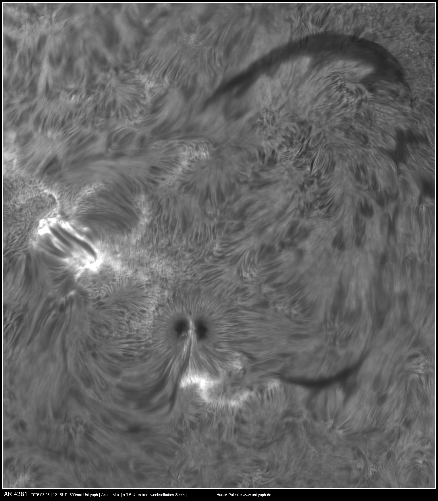 Die Sonnenaktivität geht wieder langsam zurück. Voriges Jahr hatten wir das Sonnenfleckenmaximum. Die Erfahrung zeigt aber, dass es im absteigenden Ast der Sonnenaktiviät immer noch sehr große und aktive Regionen geben kann. So bin ich zuversichtlich, auch in diesem Jahr schöne Objekte ablichten zu können. Instrumentell werden nur wenige Anpassungen vorgenommen. Dabei steht u.a. die technische Verbesserung meiner Justiereinrichtungen für den Uni an.