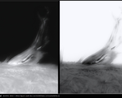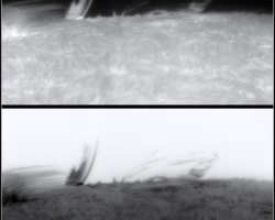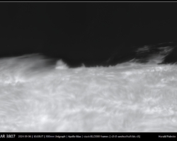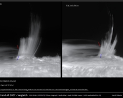 Nachdem der 300mm Spiegelunigraph komplett neu justiert, der Okularauszug im sekundären Strahlengang ausgerichtet und die Platzierung der beiden Etalone verändert worden ist, konnte ein eruptives Objekt in der wegdrehenden AR 3807