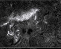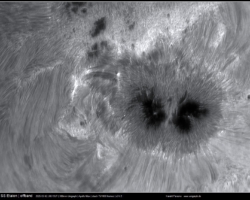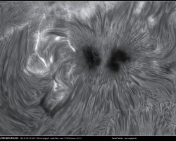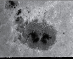 Ein Hoch aus dem Norden sorgte an diesem Tag für stabiles Wetter mit permanenten Sonnenschein. Obwohl an meinem Standort Luft aus dem Norden oder Osten sich eher ungünstig auf das Seeing auswirkt, waren am Vormittag die Bedingungen für einige Stunden gut bis sehr gut. Auf der Sonne waren zwei Regionen interessant. Einmal die Aktive Region 4079 mit der sehr großen Fleckengruppe und die Westrandsituation mit dem geschwungenen Filament, welches sich über den Sonnenrand schob.