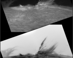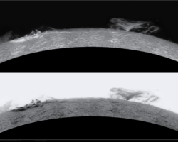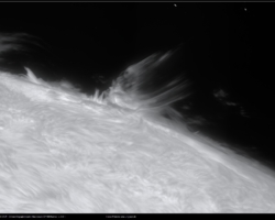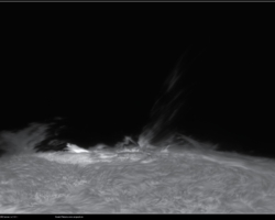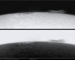 fotografiert. Ich experimentierte mit verschieden Modi im offband und Ha core Bereich, um möglichst viel des Geschehens zu erfassen. Die schöne Randeruption wurde dann ab 08:49 UT registriert. Es war nur ein kleiner C1 Flare. Jedoch