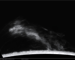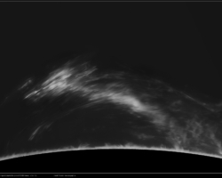 Größe. So früh hatte ich den Unigraph noch nie benutzt, da meist das Seeing zu schlecht für diesen niedrigen Sonnenstand ist. Die Protuberanz aber ließ mir keine Zeit auf einen höheren Sonnenstand mit besseren Seeing zu warten. Also