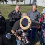 Der Wettergott hatte ein Erbarmer, so dass es tatsächlich möglich war, am Nachmittag Sonne in den Halpha-und Weißlichtteleskopen zu beobachten. Der Vereinsnachwuchs übte dabei fleißig die Bestimmung der Fleckenrelativzahl am Telementor